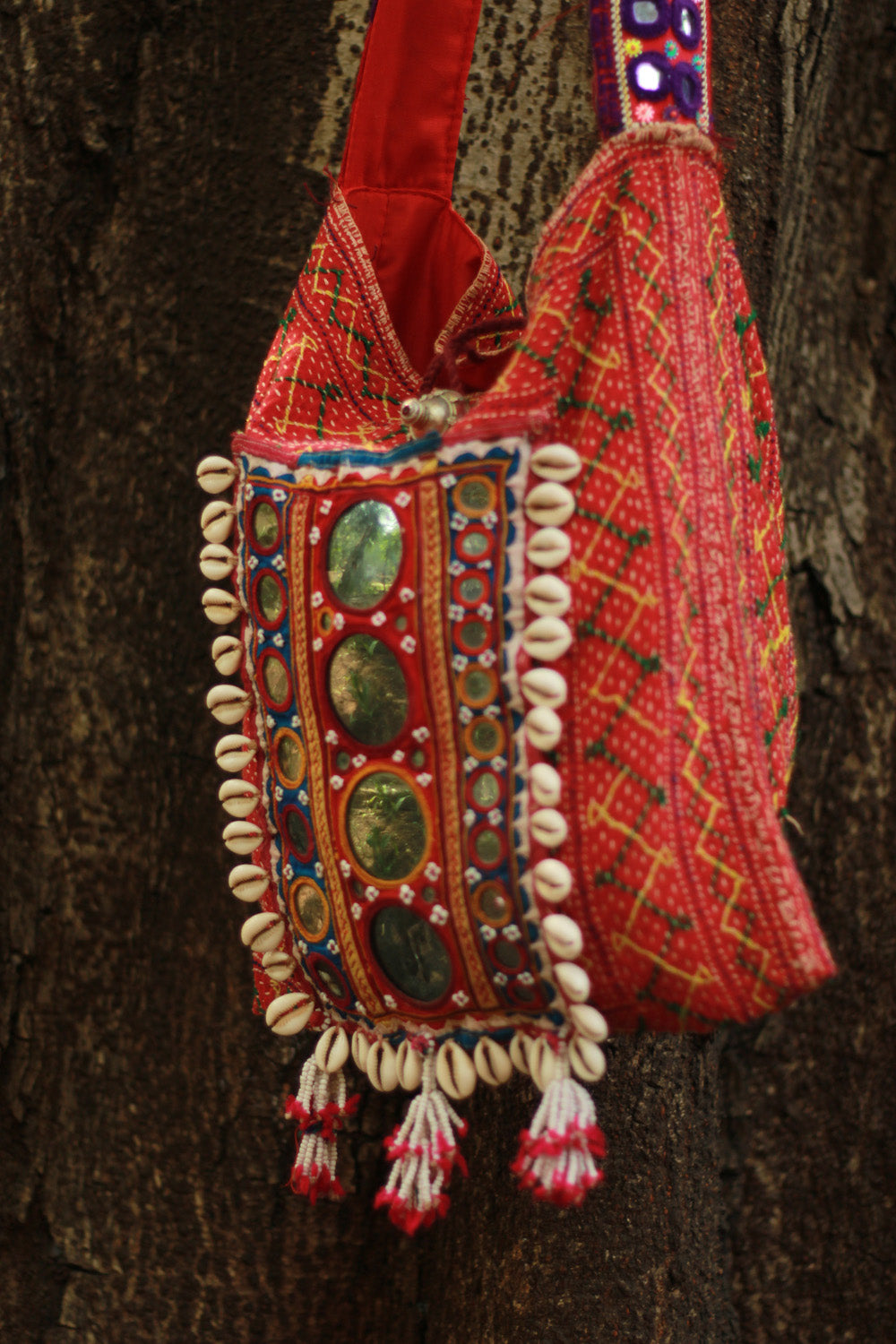 Please Note: These bags are made from upcycled fabric. Some colours may appear faded, and some mirror work may be missing— This is part of the unique charm and character of each bag. These natural imperfections only enhance the beauty and story behind every piece.