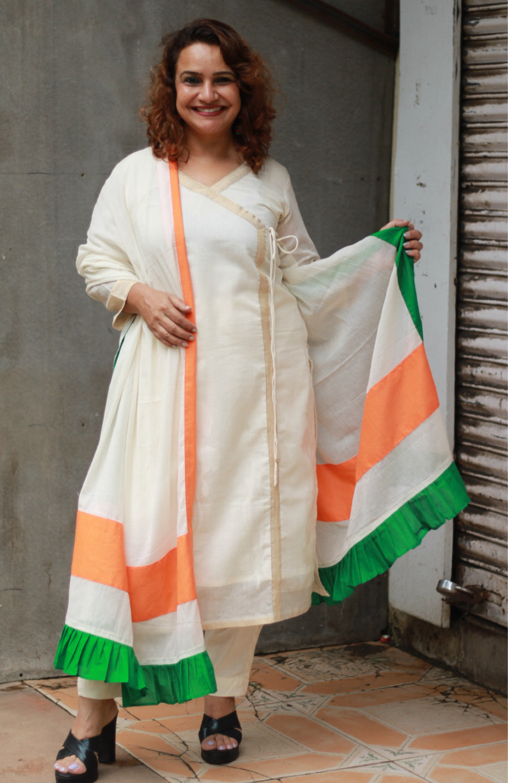 Whether worn for Independence Day or any occasion that honors the values of freedom, the Swatantra Mul Dupatta serves as a reminder of the beauty of freedom, infused with the rich culture and history of India.