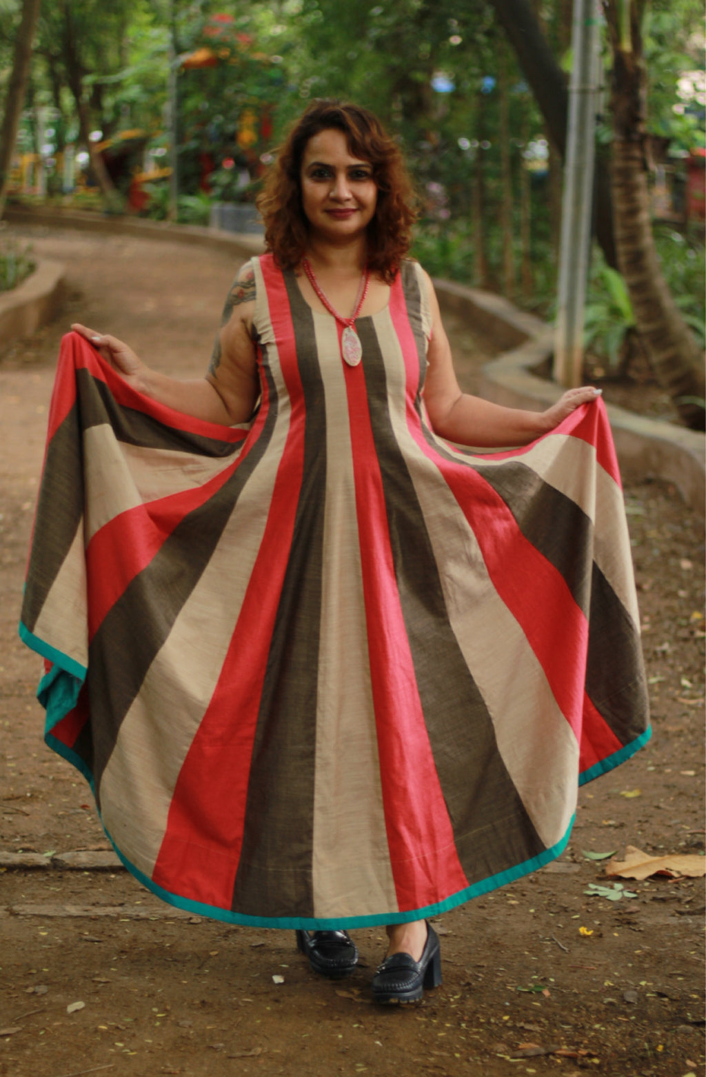 The Tees Kali is a seamless meld of thirty, unique petals of fabric, designed especially to create that effortless, effervescent, gravity-defying swirl- a mellifluous flare that spins to its own cadence, that ripples in geometric, yet almost musical synchronicity... A rich, draping piece made with nearly 8 mtrs of fabric, our Kalidars are a simple, yet seemingly infinite expanse of gorgeous fabrics that emphasise a stunning cut with a pared-back, pure look...