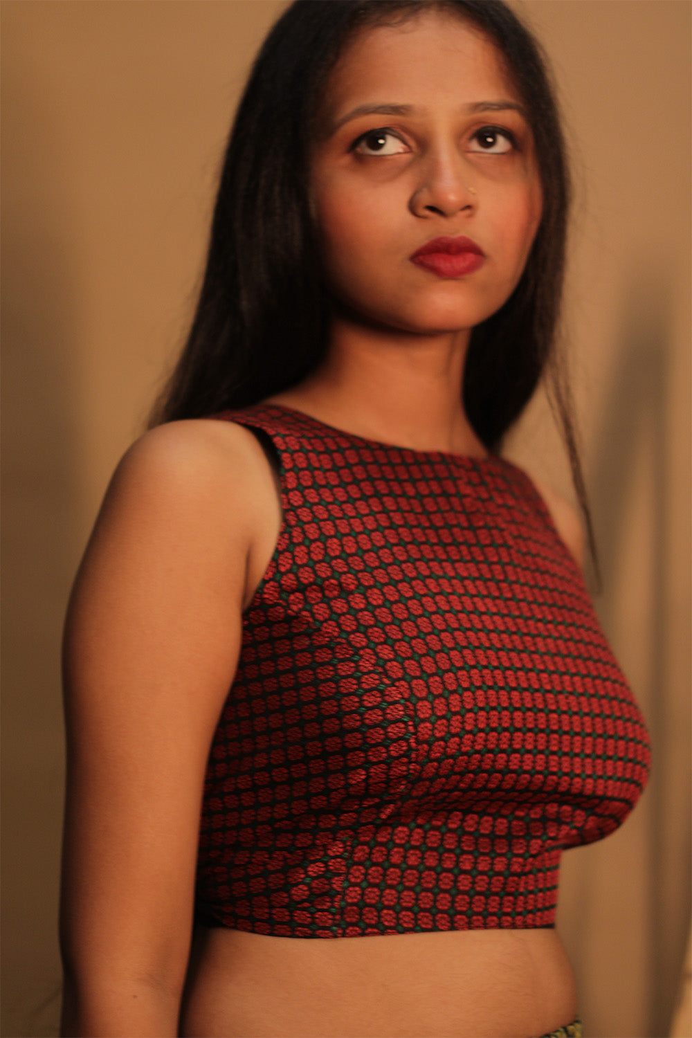 Mastaani | Reversible Blouse | Noir with Red Floral Khunn