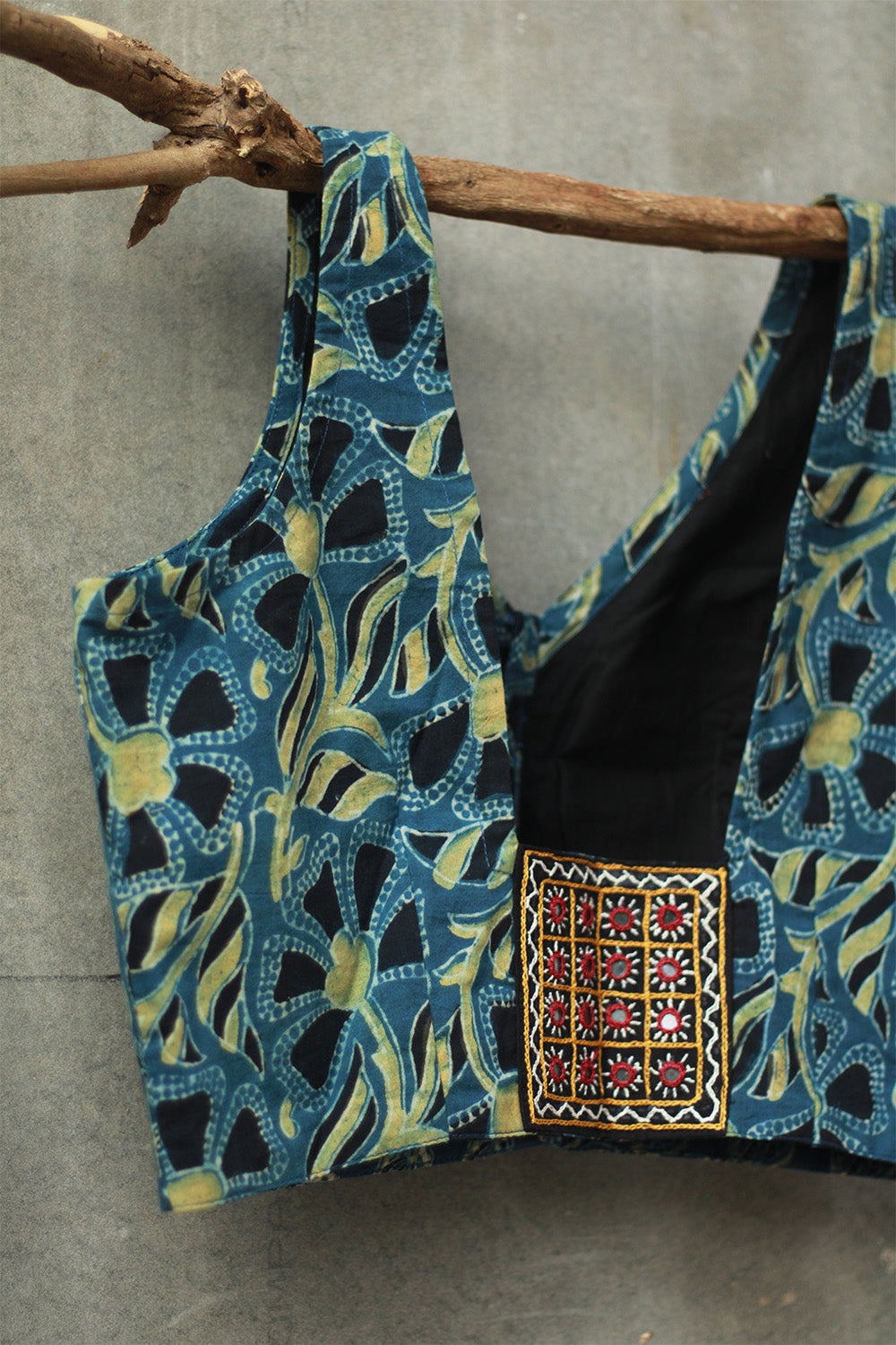 Immerse yourself in timeless artistry with our Ajrakh Medley cotton blouse, a celebration of heritage craftsmanship and contemporary elegance. Made from soft, breathable cotton, this blouse brings together a harmonious blend of intricate Ajrakh prints, each pattern telling a story of tradition and skill.