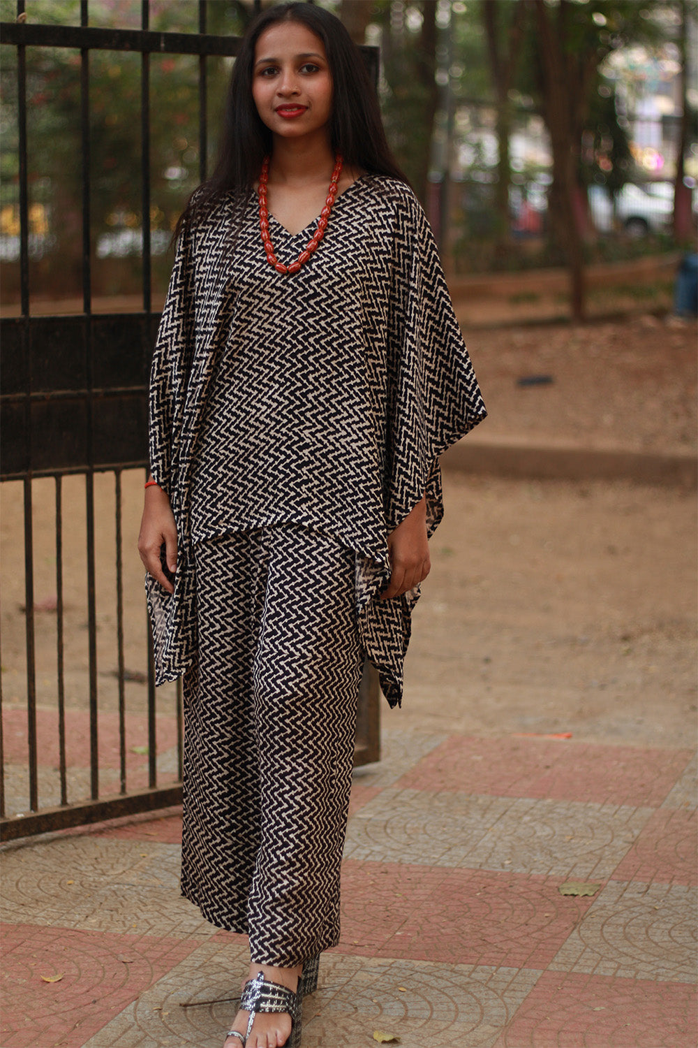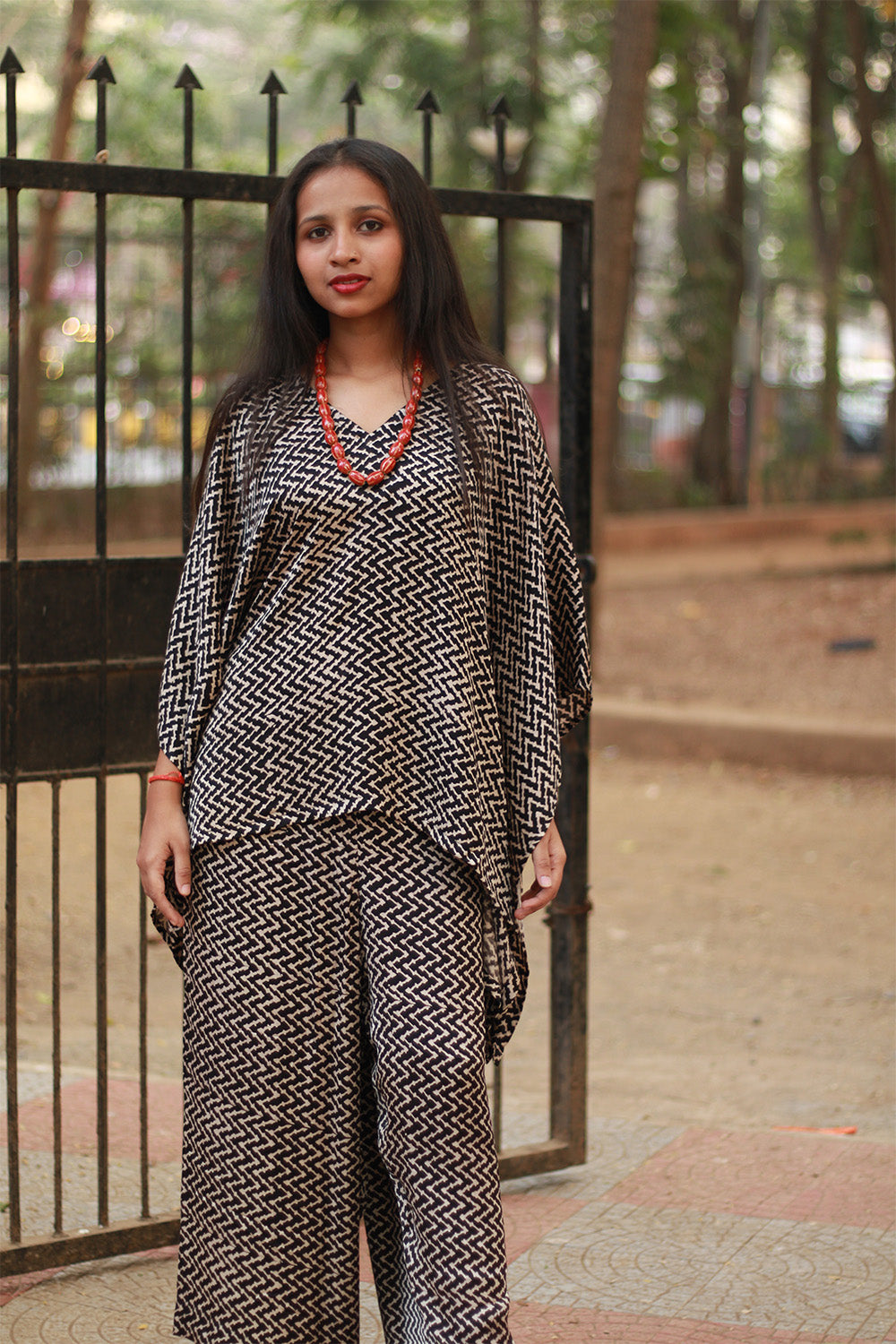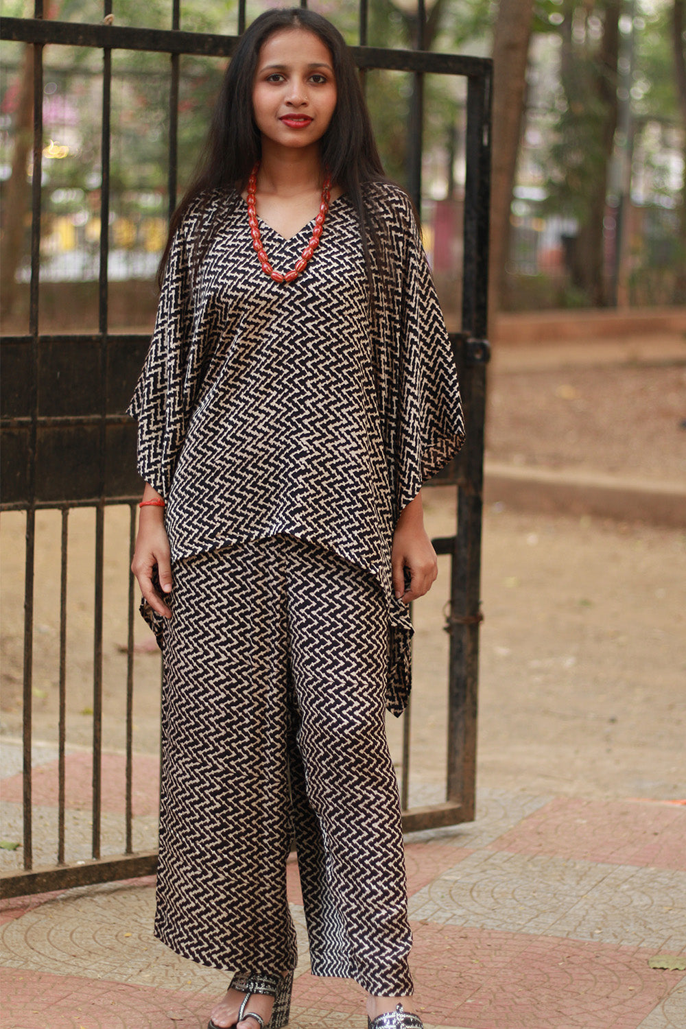 Step into sophistication with Taarini- our Kaftan tops crafted from luxurious Modal Silk, exuding elegance and comfort. Fashioned from mesmerizing blockprinted Ajrakh or Vanaspati motifs, each top tells a story of tradition and artistry. The satiny texture drapes gracefully, enhancing your silhouette with effortless allure. Perfect for an evening out, these tops blend cultural heritage with contemporary flair, making a statement wherever you go.