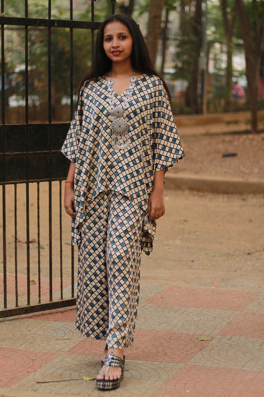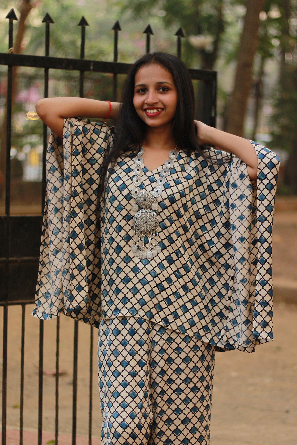 Step into sophistication with Taarini- our Kaftan tops crafted from luxurious Modal Silk, exuding elegance and comfort. Fashioned from mesmerizing blockprinted Ajrakh or Vanaspati motifs, each top tells a story of tradition and artistry. The satiny texture drapes gracefully, enhancing your silhouette with effortless allure. Perfect for an evening out, these tops blend cultural heritage with contemporary flair, making a statement wherever you go.