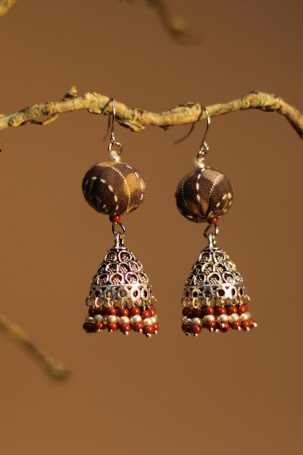 These captivating jhumkas boast a unique twist - they are delicately crafted from fabric potli and rolls, ingeniously repurposing "chindi" waste fabric scraps from our apparel lines.